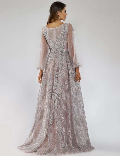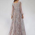 SMC29667 Dazzling embroidered V-neckline bishop sleeves fit-and-flare dress
