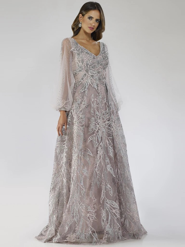 SMC29667 Dazzling embroidered V-neckline bishop sleeves fit-and-flare dress